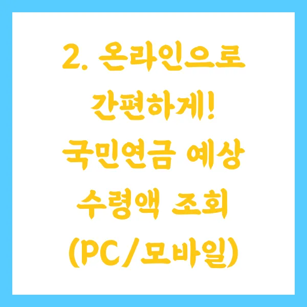 2. 온라인으로 간편하게! 국민연금 예상 수령액 조회 (PC/모바일)